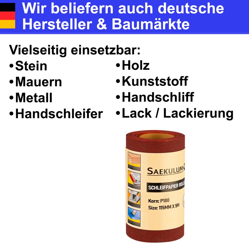Schleifpapier-Rolle Korn 180 / 115mmx5m